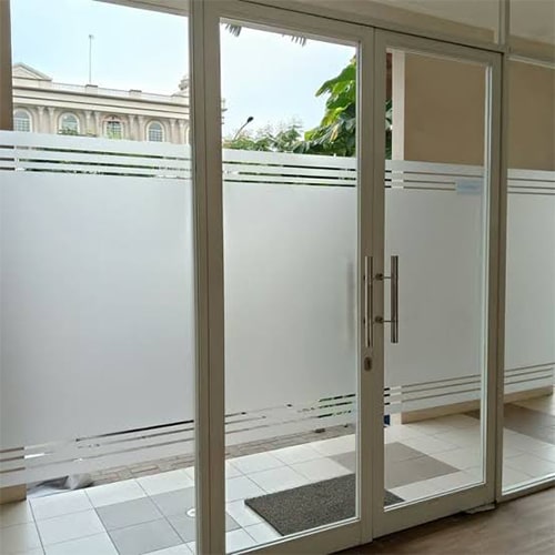 Dekorasi kaca elegan, tampil buram untuk privasi dan estetika.